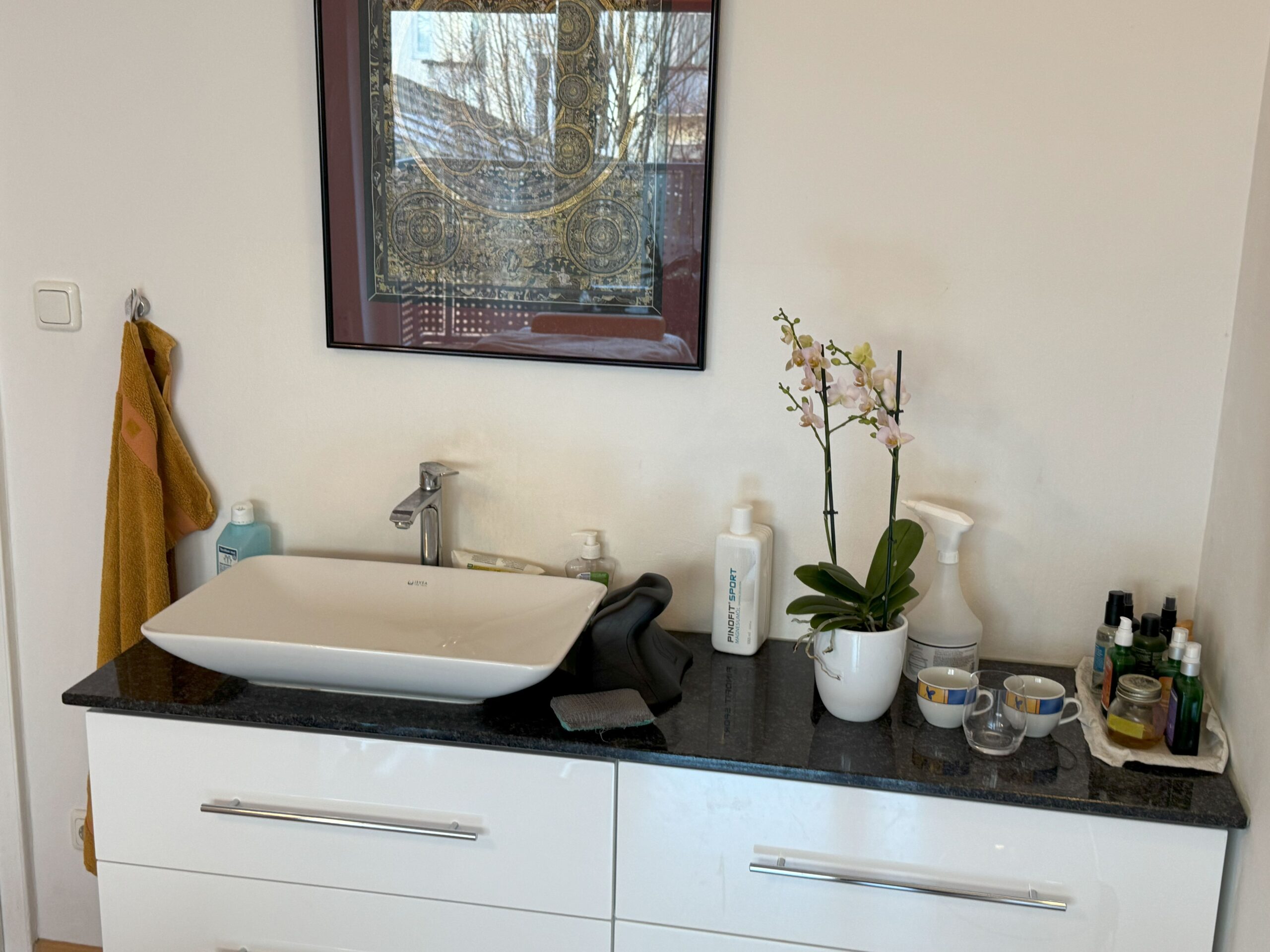 Außerdem gehört ins Angebot die Gemeinschaftsflächen: WC mit Dusche, eine voll ausgestattete 18qm große Küche mit Sitzmöglichkeit (alles zum Kochen, Mikrowelle vorhanden) und einen schönen Wartebereich mit 3 Stühlen.